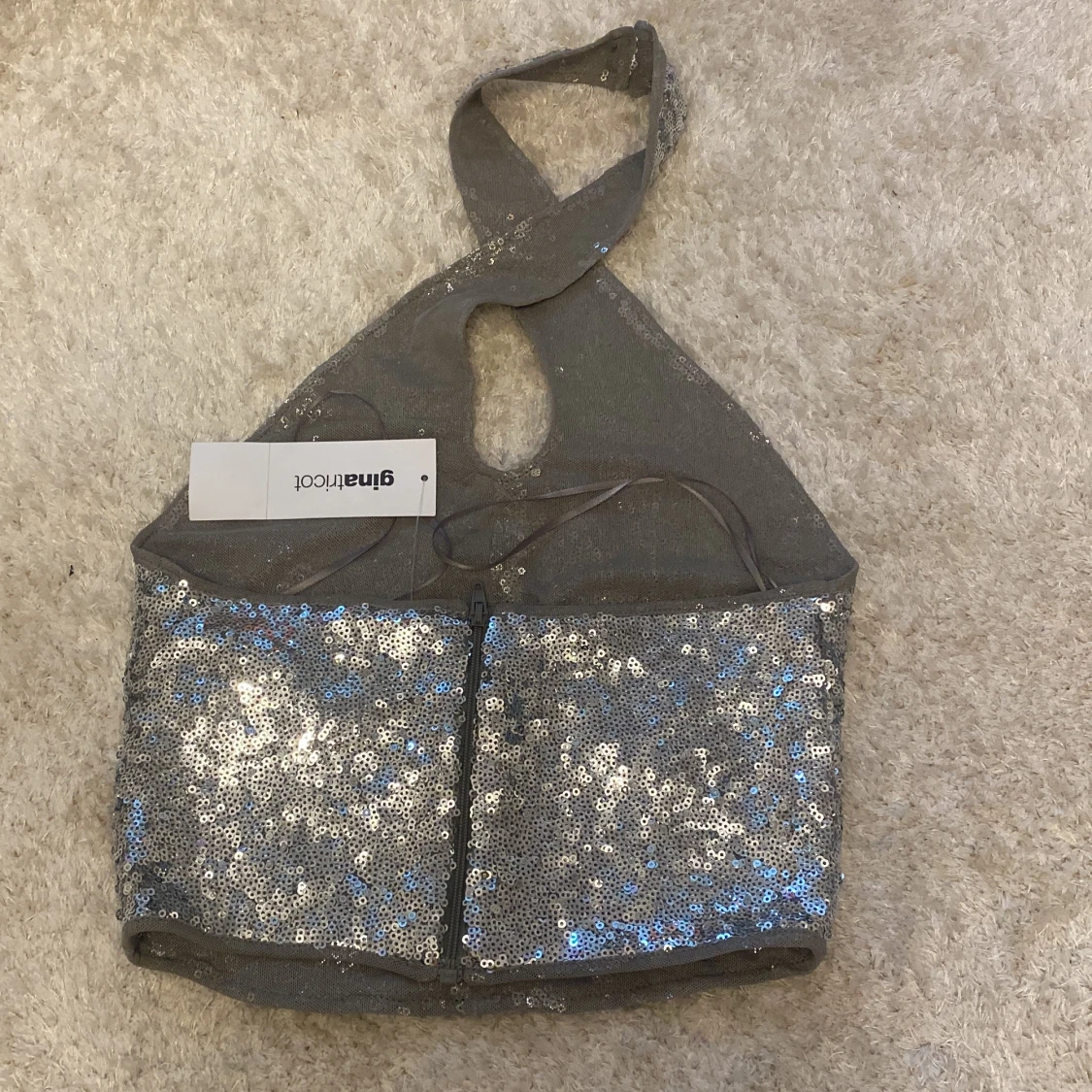 Halterneck topp från Gina med paljetter, storlek XS men passar S också. Aldrig använd och lappen kvar. Vid frågor eller fler bilder är det bara att skriva, tar emot prisförslag