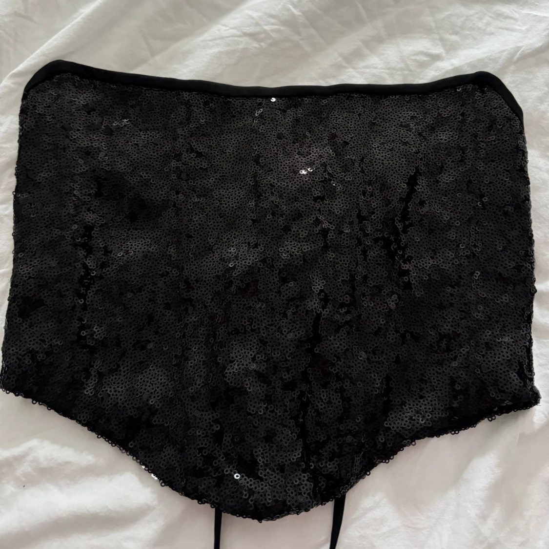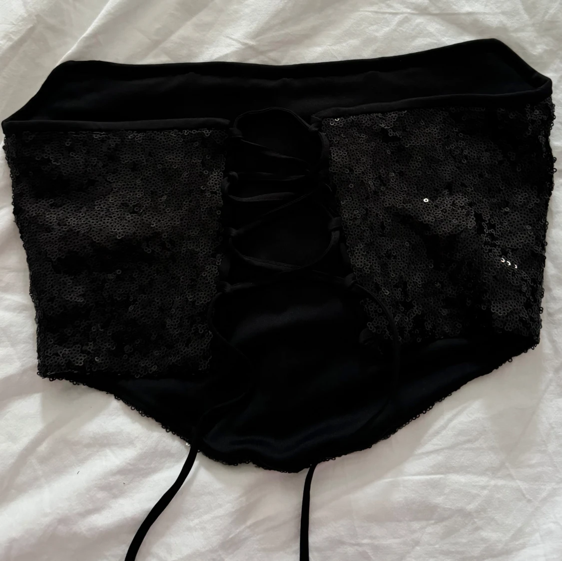 En snygg korset topp som endast använts 1 gång. Har knytning baktill så man kan justera hur hårt den ska sitta. I väldigt bra skick.