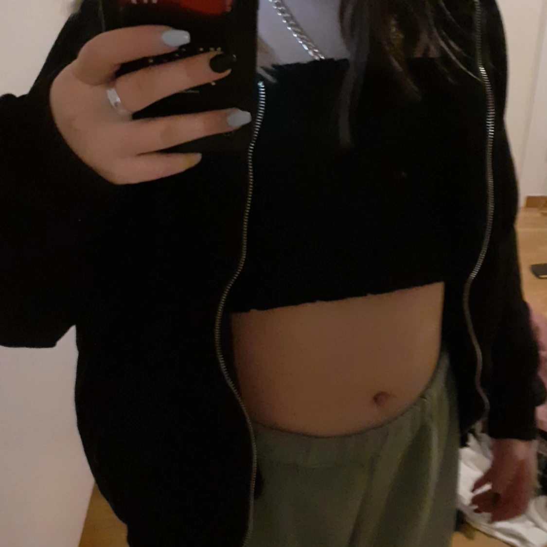 En svart crop top i bra skick har andvänts en fåtal gånger.🖤 Skriv till mig om du vill buda.👍 storleken är M men passar även dom som har S.