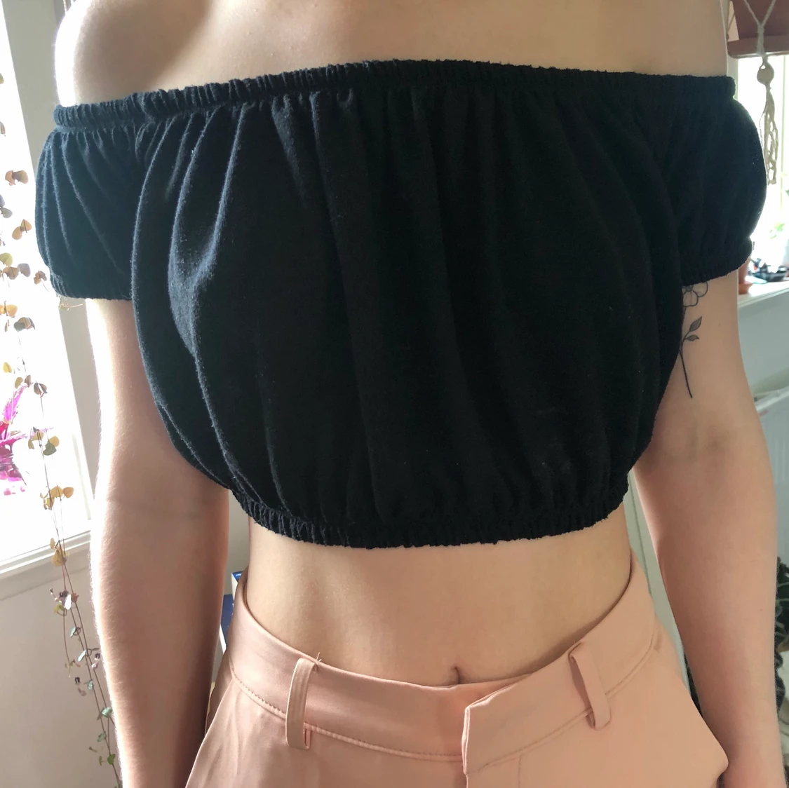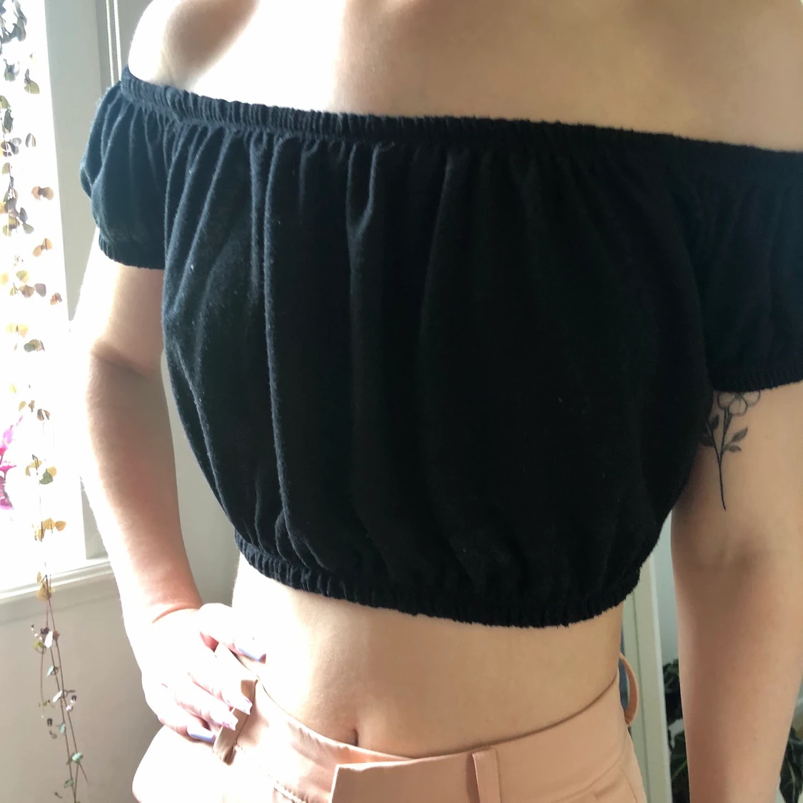 En svart off shoulder top från Gina Tricot. Använd ett fåtal gånger, men inga fläckar eller liknande. Passar XS-S.