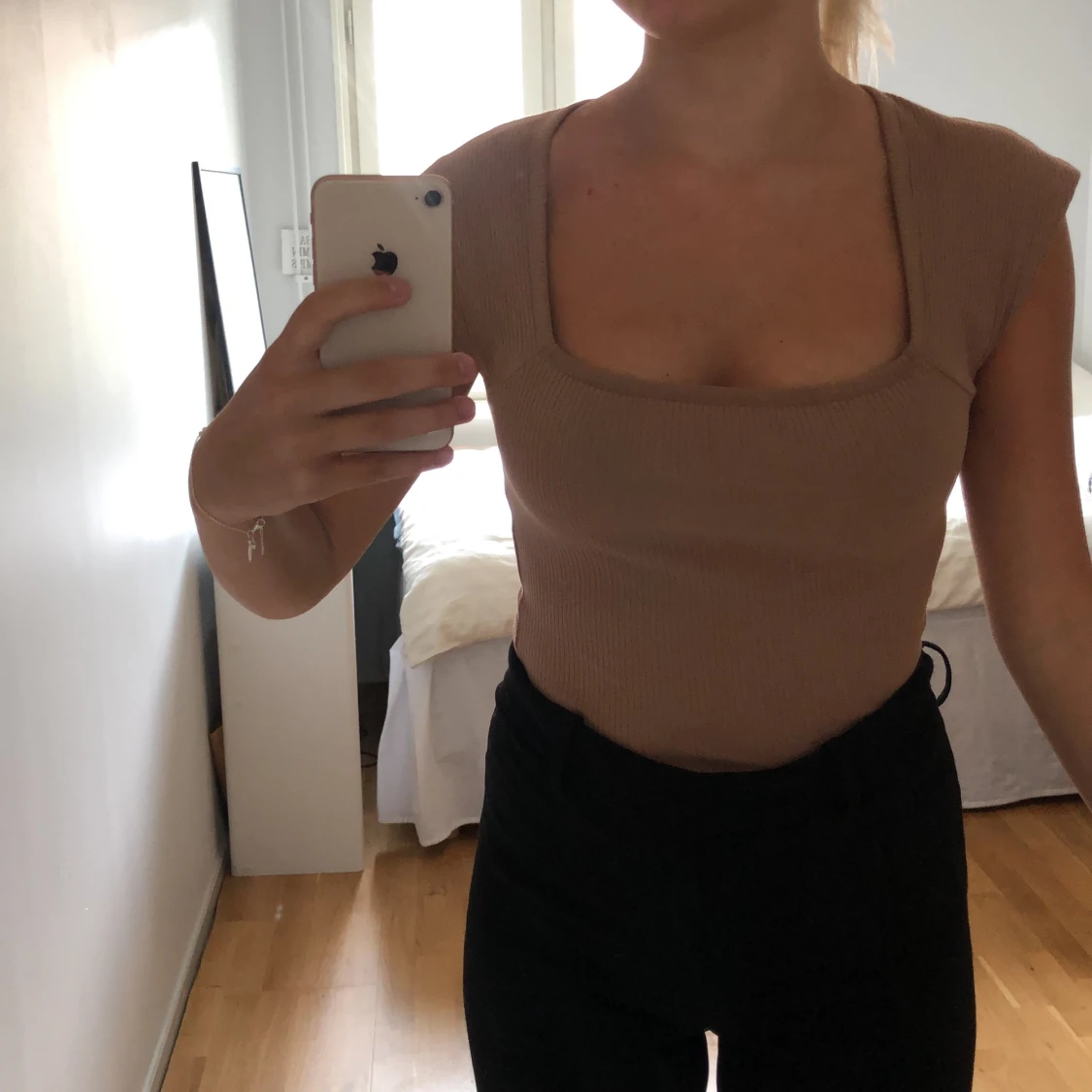 En jättegullig beigefärgad ribbad topp från Gina Tricot! Sitter jätefint i storlek Small. Skriv för snabb affär eller mer bilder xoxo💞