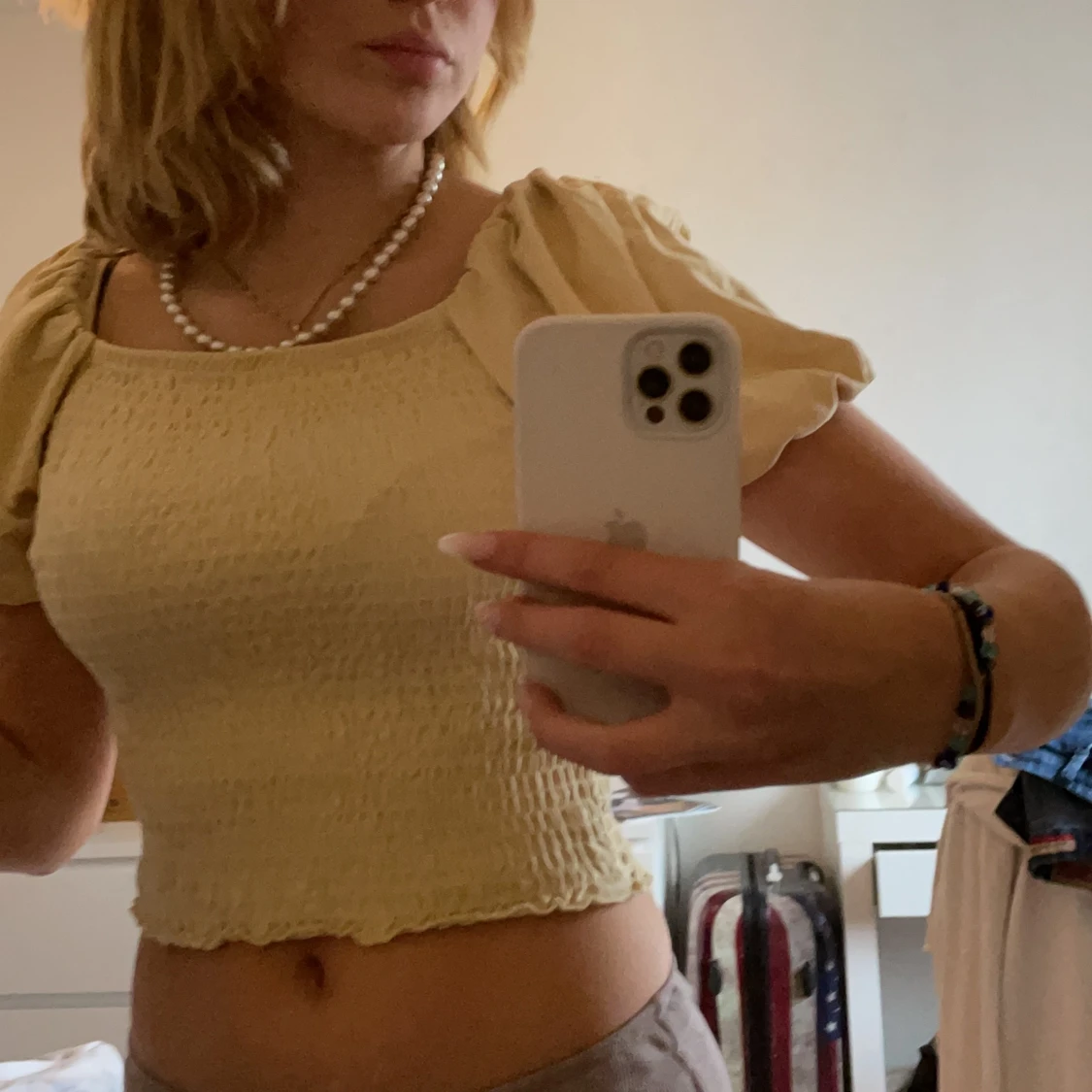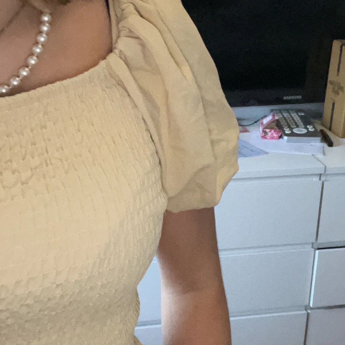 En gul gullig topp från ginatricot med lite piffigt på axlarna och typ ribbad. Priset går att diskutera!