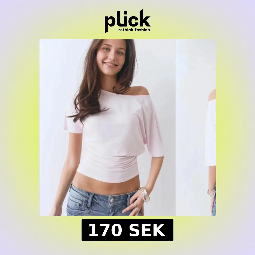 Säljer en ljusrosa offshoulder topp med kort ärm och tight passform i midjan. Toppen har en snygg drapering och är tillverkad i ett mjukt, stretchigt material. Perfekt för en trendig och avslappnad look.
