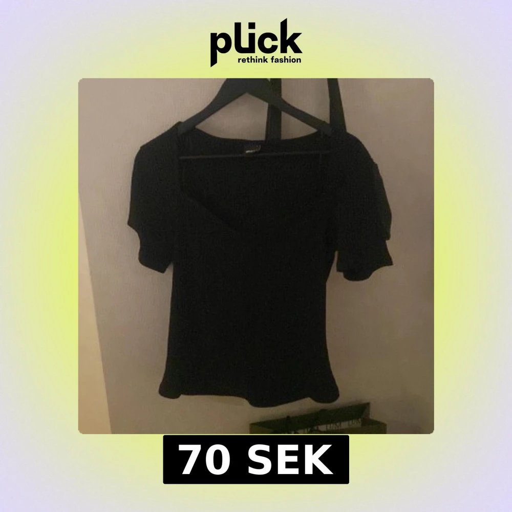 Snygg svart topp från Gina Tricot med korta ärmar och v-ringning. Perfekt för en stilren look.