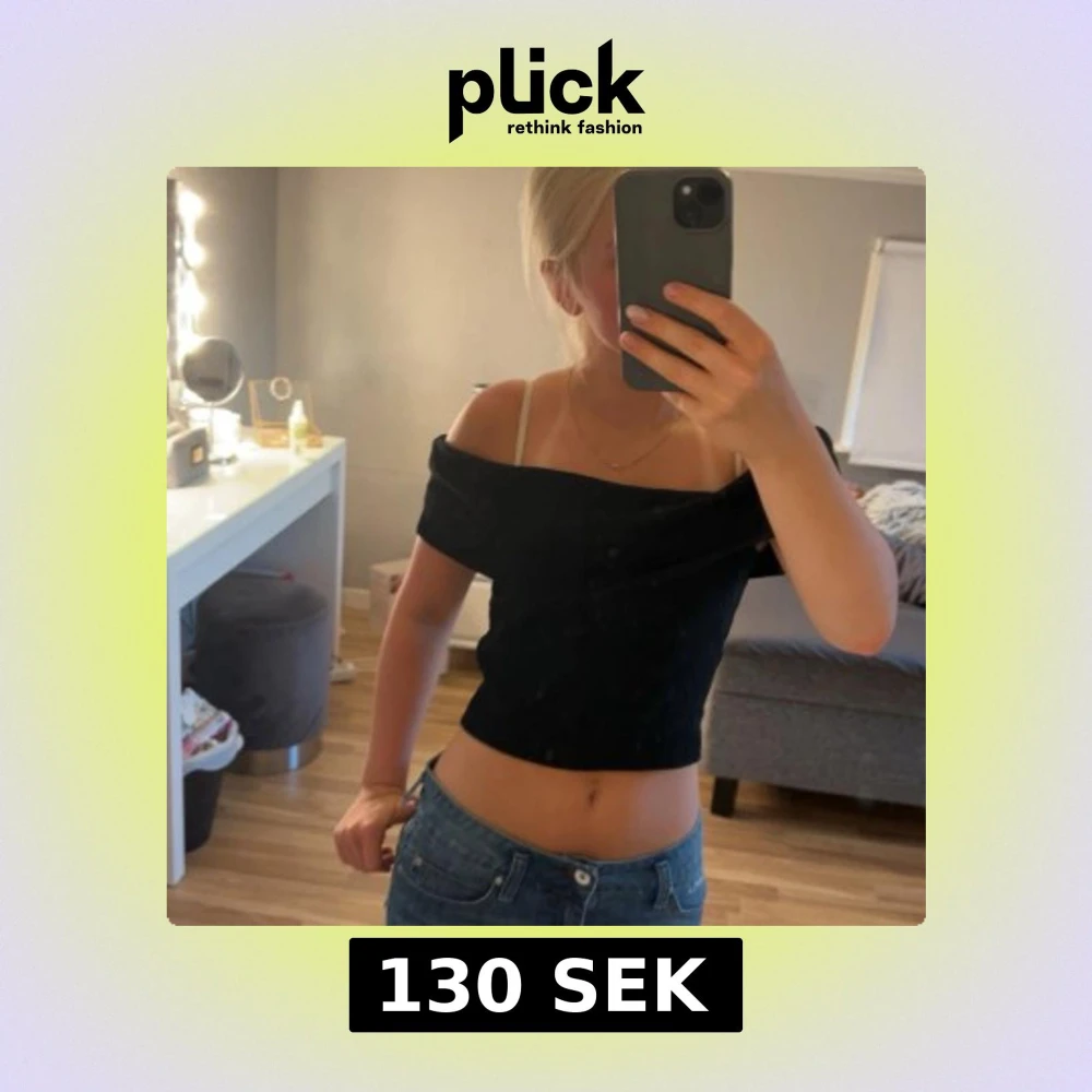 Snygg svart croppad topp från Gina Tricot med offshoulder-design. Toppen är tight och har en stilren look som passar perfekt till jeans eller kjol. Gjord i mjukt bomullsmaterial som känns skönt mot huden.