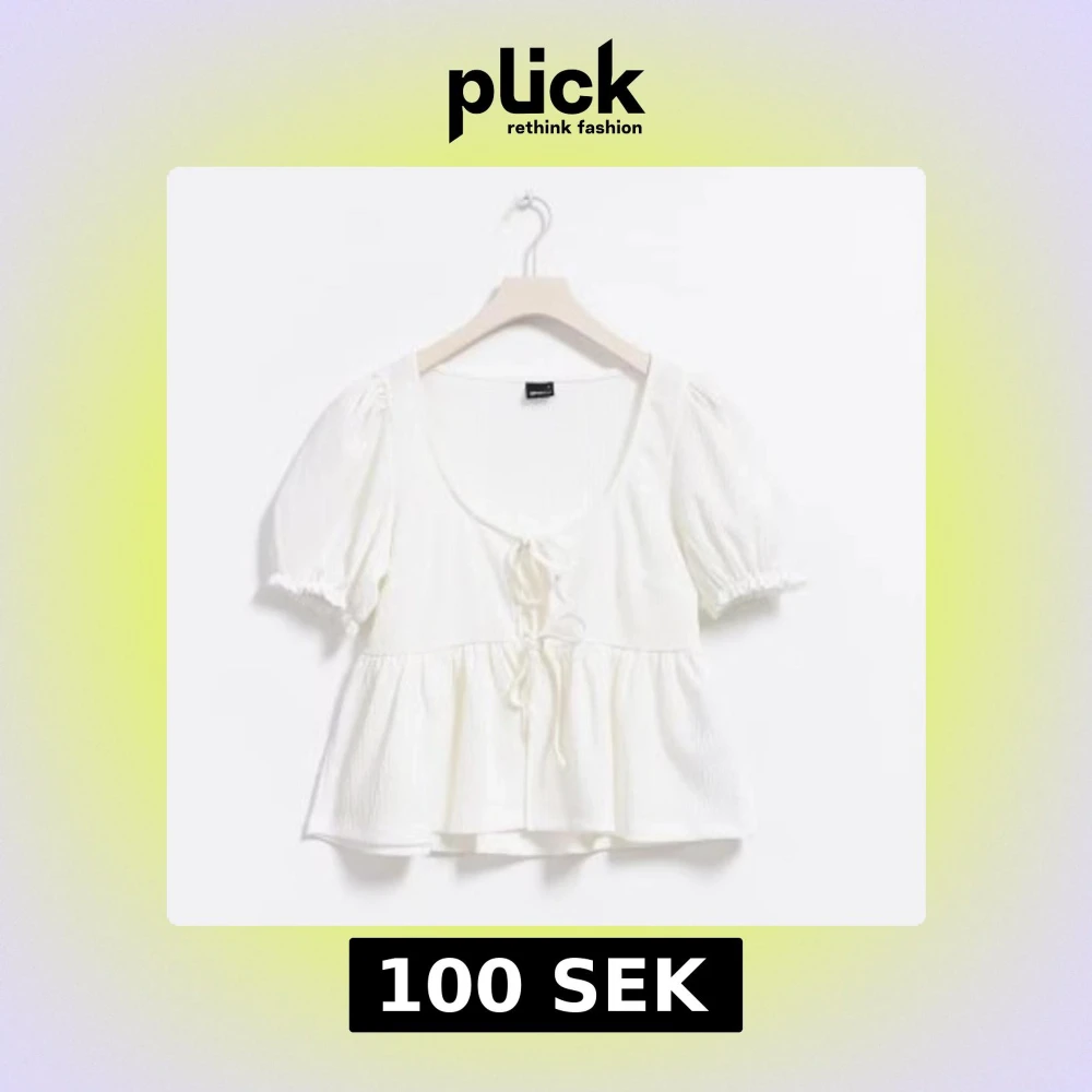 Vit blus med puffärm och knyt