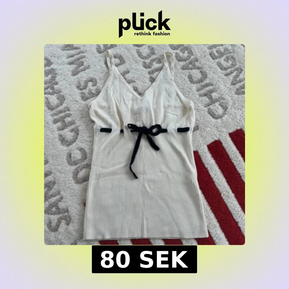 Säljer en vit ribbad linnetopp från Gina Tricot med smala axelband och v-ringning. Toppen har en svart knytning i midjan som ger en snygg detalj. Perfekt för varma dagar och enkel att styla med jeans eller kjol.