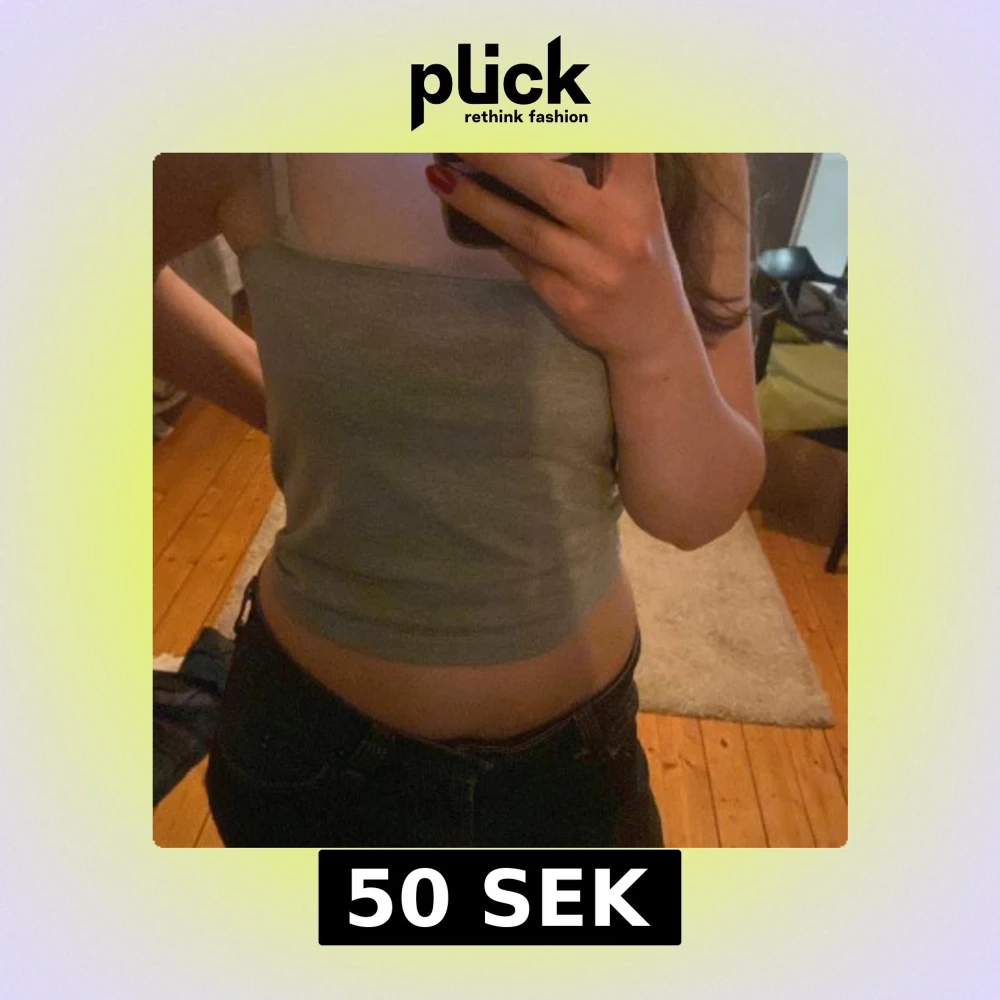 Säljer en grå linnetopp från Gina Tricot. går lätt att göra tubtopp av linnet