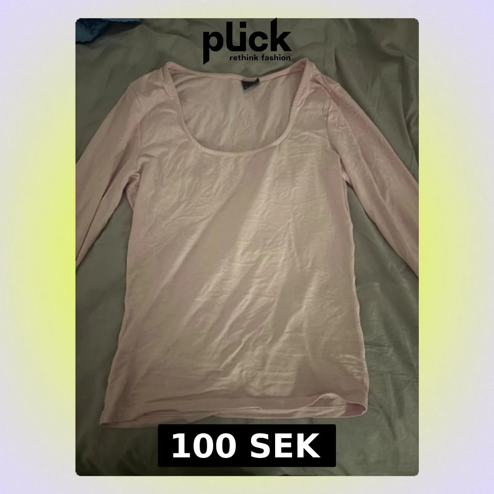 Säljer en ljusrosa långärmad topp med rundad, djup urringning och slitsdetalj vid ärmslut. Toppen är i mjuk bomull och har en slim passform som sitter snyggt på kroppen. Perfekt för dig som gillar enkla och stilrena plagg.