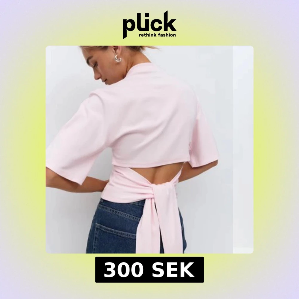 Superfin ljusrosa topp med korta ärmar och snygg omlottdetalj i midjan som knyts baktill. Helt ny med prislapp kvar.