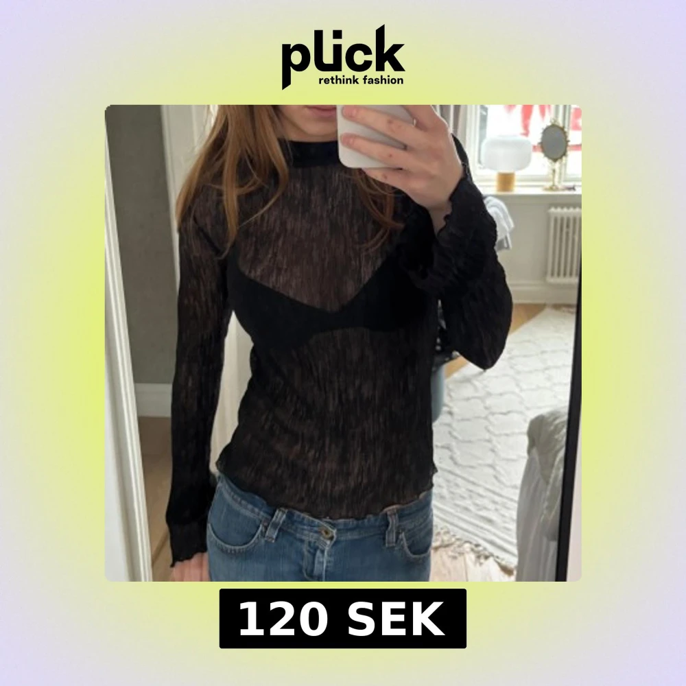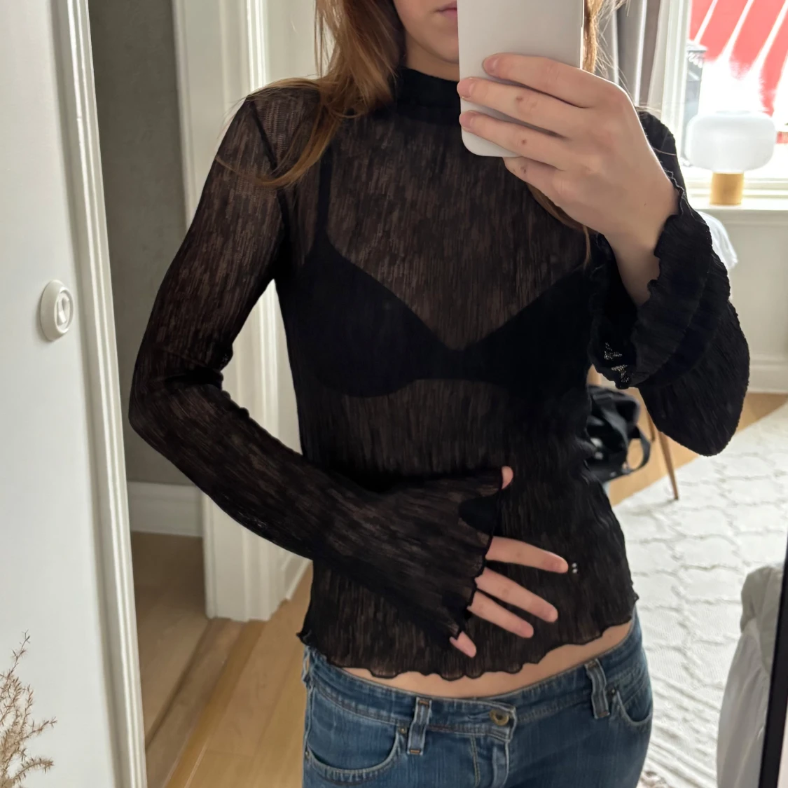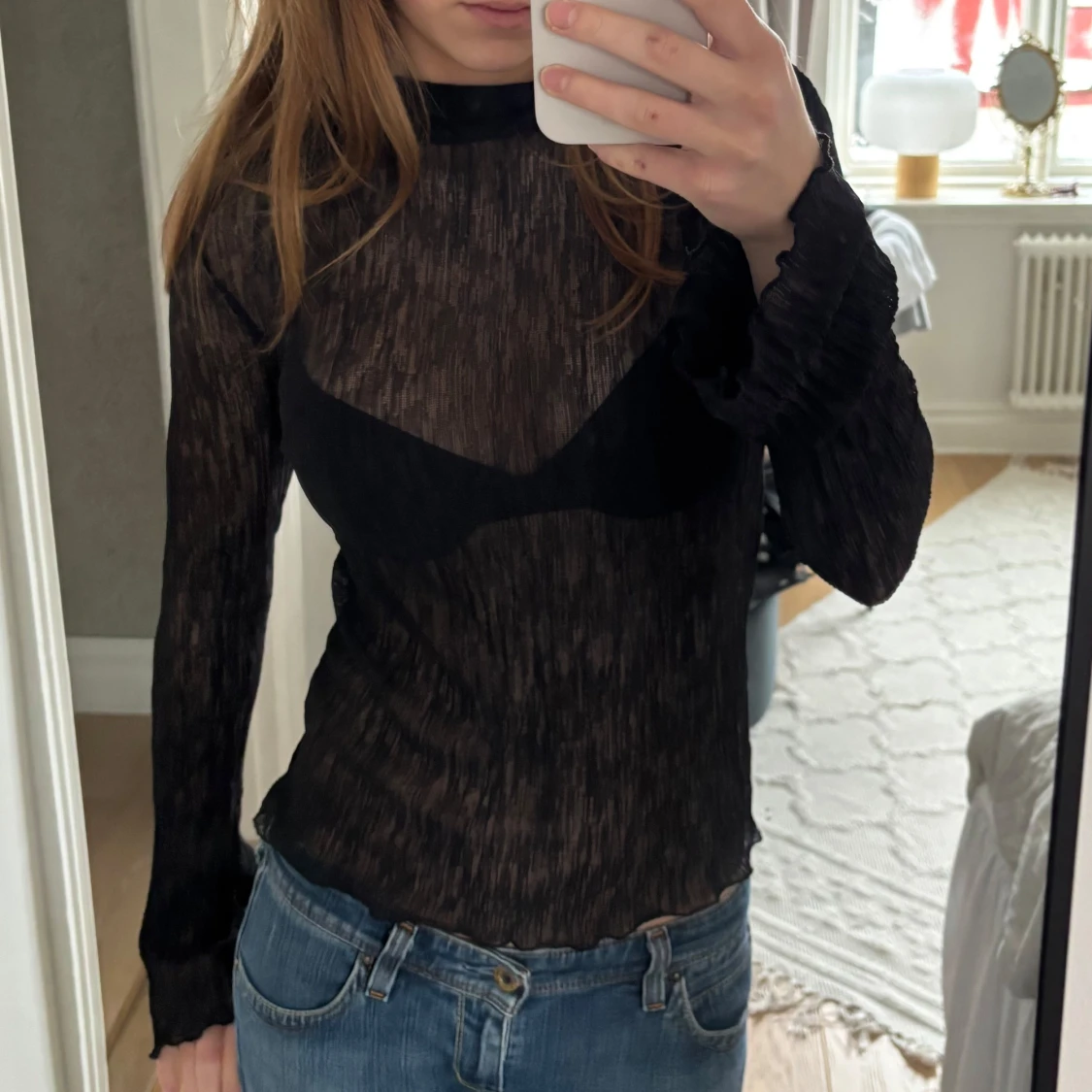 Snygg svart genomskinlig topp med långa ärmar från Gina Tricot. Bra skick. Storlek S, skriv för fler bilder eller frågor.