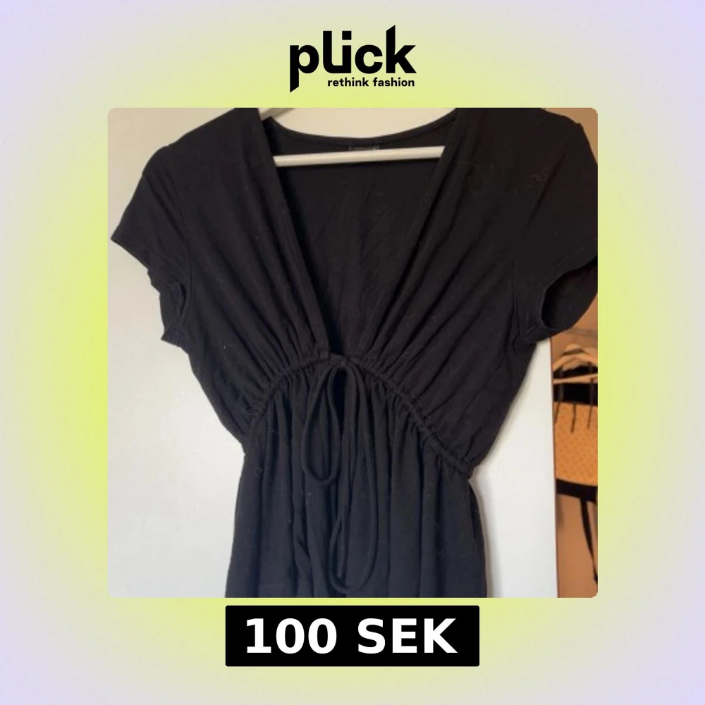 Svart topp med knytning från Gina Tricot med djup v-ringning.