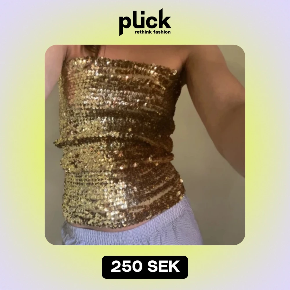 Tubtopp i guldiga paljetter. SÅ FIN! Jättebra skick. Hittar ingen storlek men sitter som en S/38