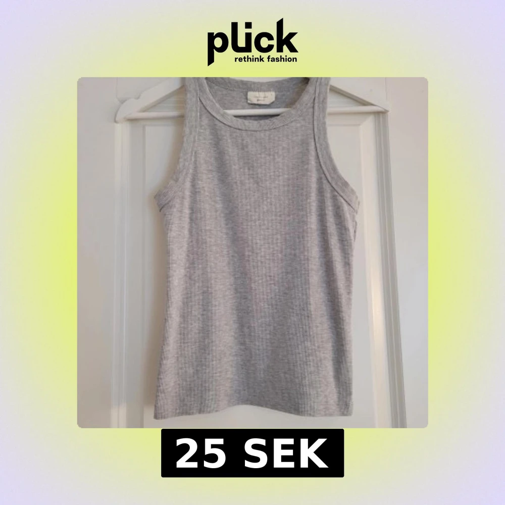 Säljer en stilren grå ribbad linnetopp från Gina. Perfekt för varma dagar eller som lager under en jacka. Toppen är ärmlös och har en klassisk rund halsringning. Ett måste i garderoben för en enkel och snygg look.