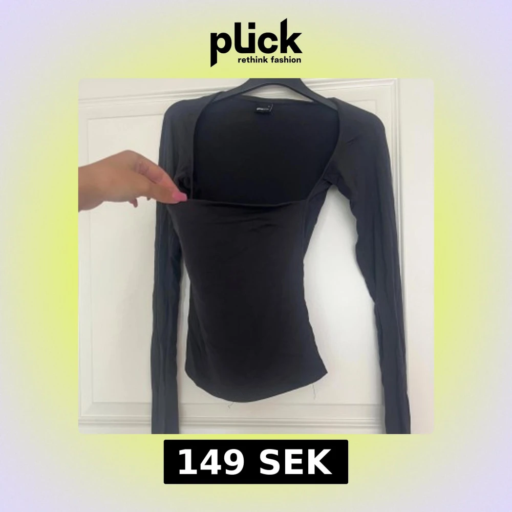 Svart långärmad topp från Gina Tricot med fyrkantig urringning. Tunn och stretchig bomullskvalitet som sitter tight mot kroppen. Perfekt för dig som gillar minimalistisk stil och vill ha en enkel men snygg topp till din garderob.