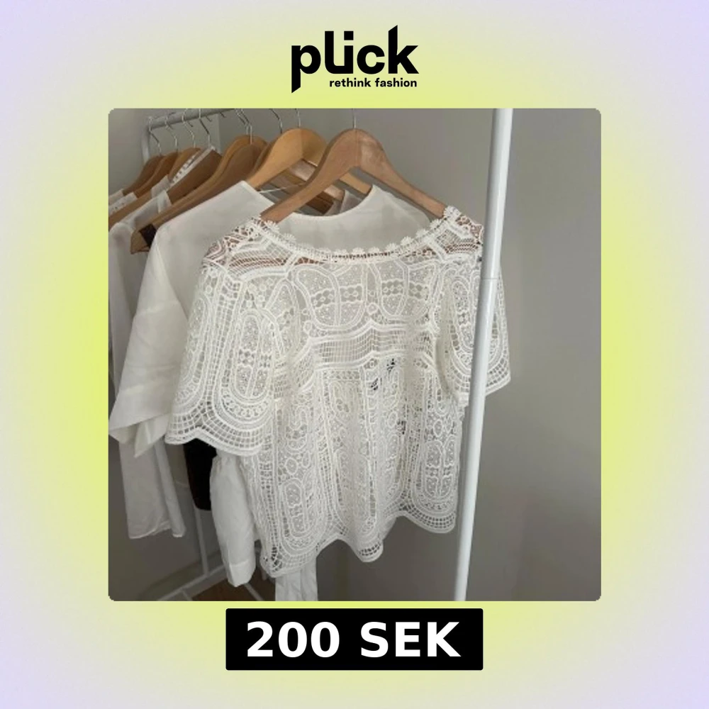 Superfin vit blus i spets med korta ärmar och rund hals. Blusen har ett detaljerat broderat mönster och är lätt transparent, perfekt för att skapa en romantisk och trendig look. Passar snyggt till både jeans och kjol.