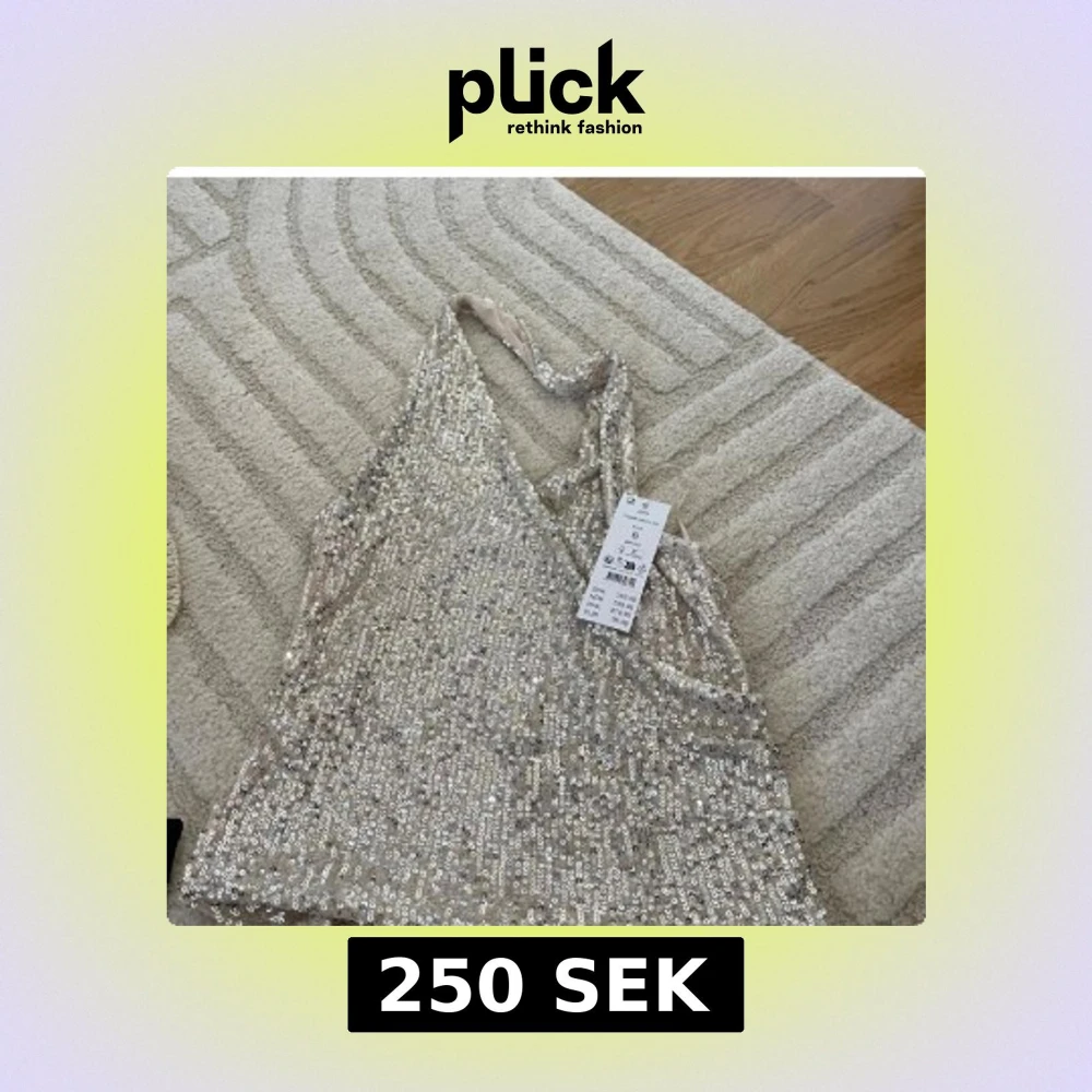 Säljer en glittrig silverfärgad topp från Gina Tricot, täckt med paljetter. Toppen har smala axelband och är ärmlös med en croppad passform. Perfekt för att sticka ut på festen eller nyår. Supersnygg att styla med höga jeans eller kjol.