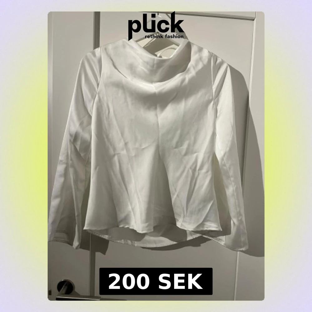 Säljer en vit långärmad silkeströja från Gina Tricot i blankt, mjukt material. Toppen har snygg drapering och öppen rygg med snörningsdetalj upptill. Perfekt för dig som gillar stilrena och trendiga plagg med det lilla extra. Tröjan är använd fåtal gånger