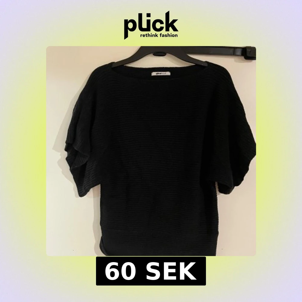 Svart stickad topp från Gina Tricot i storlek S. Modellen har breda, korta ärmar och en rund halsringning. Materialet är grovstickat och ger en cool struktur. Perfekt att styla med jeans eller kjol för en chill look.