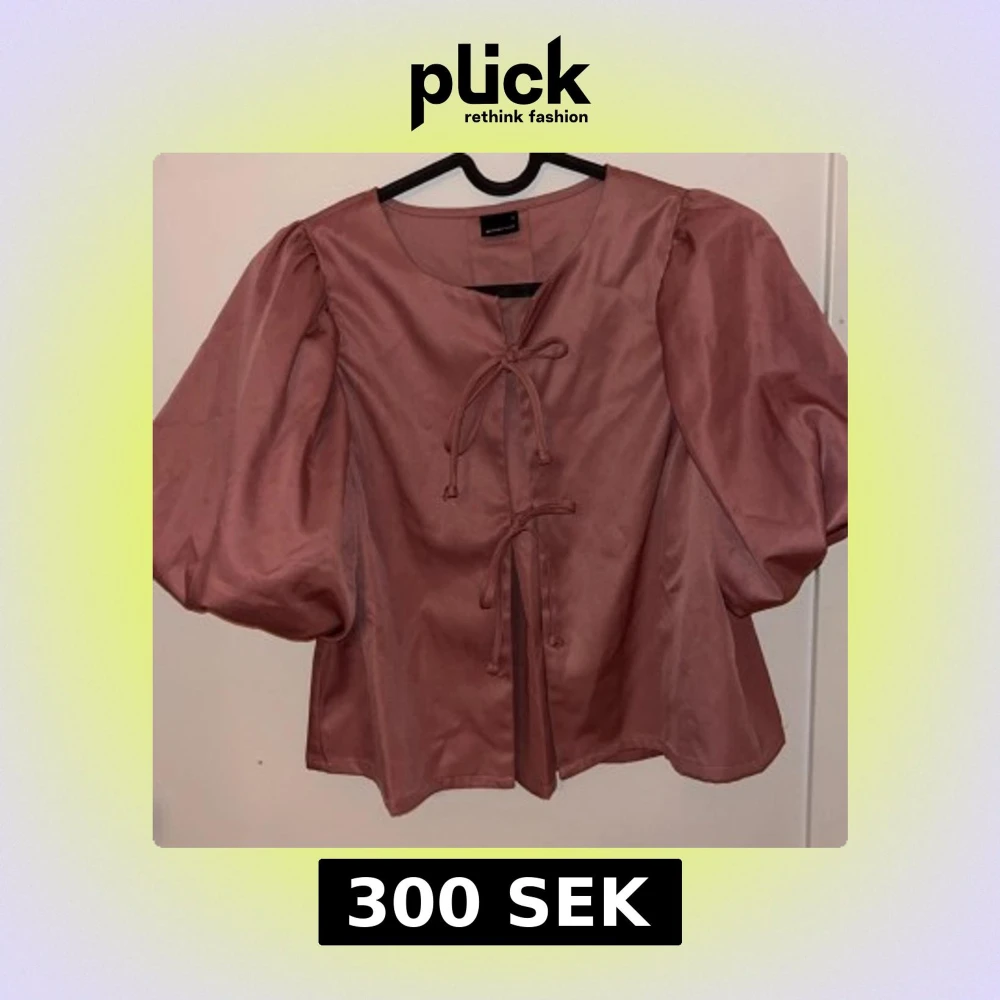 Supersöt rosa blus från ginatricot med puffiga ärmar och två knyt framtill. Blusen har en lätt glansig finish och en luftig passform. Perfekt för dig som gillar statement-ärmar och unika detaljer.