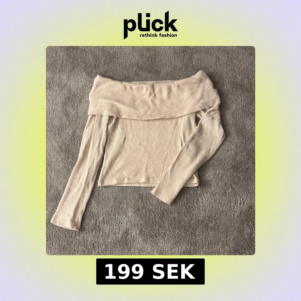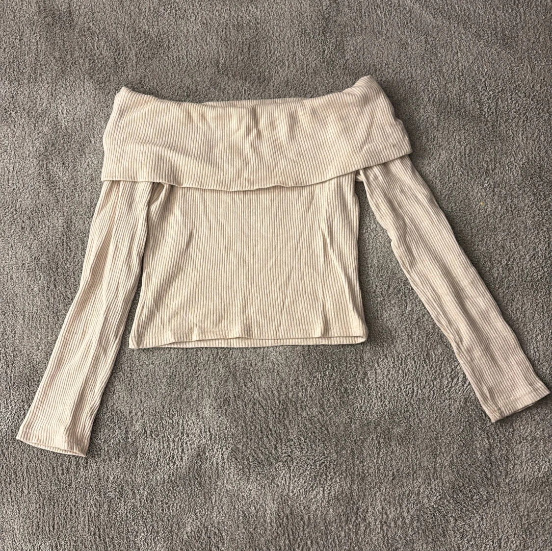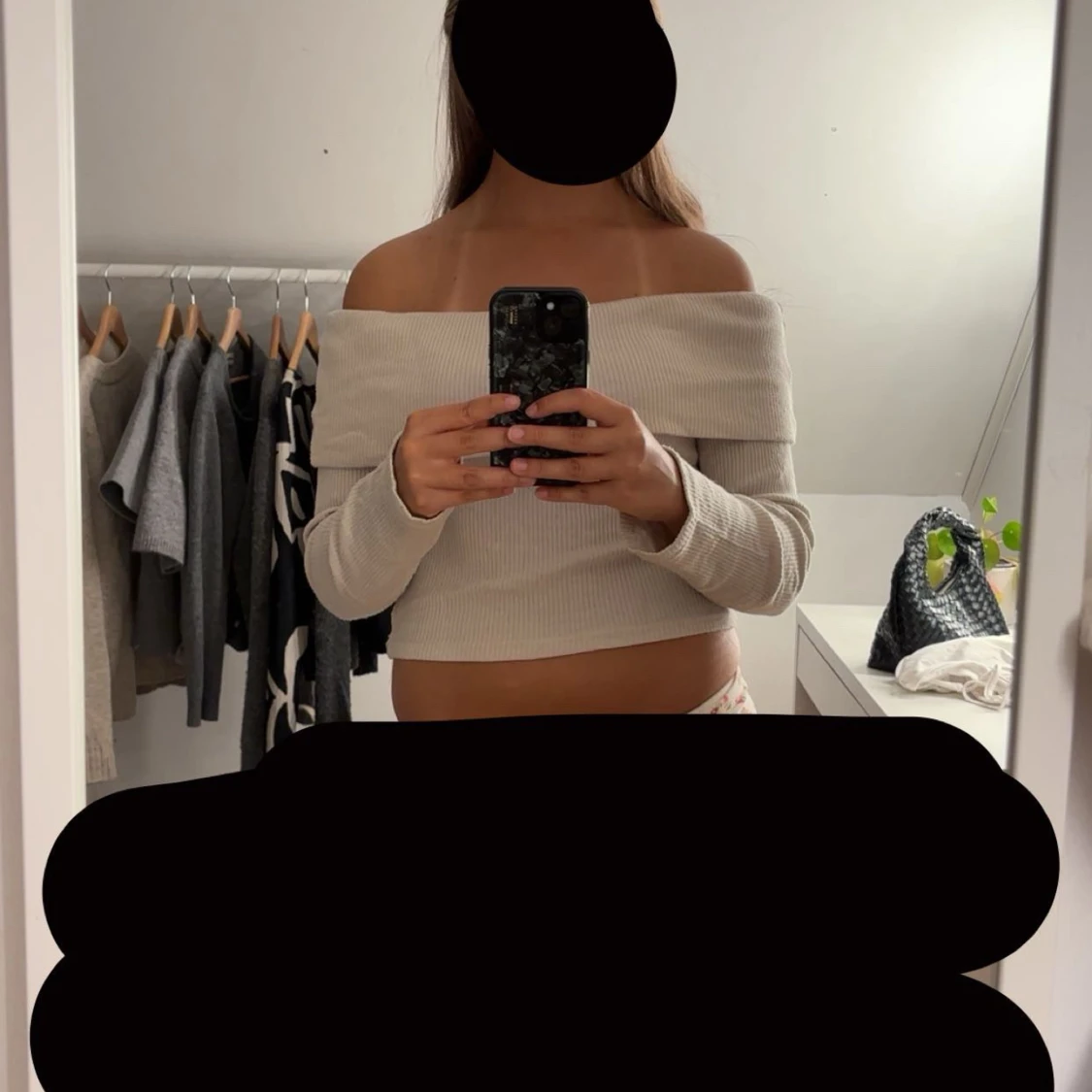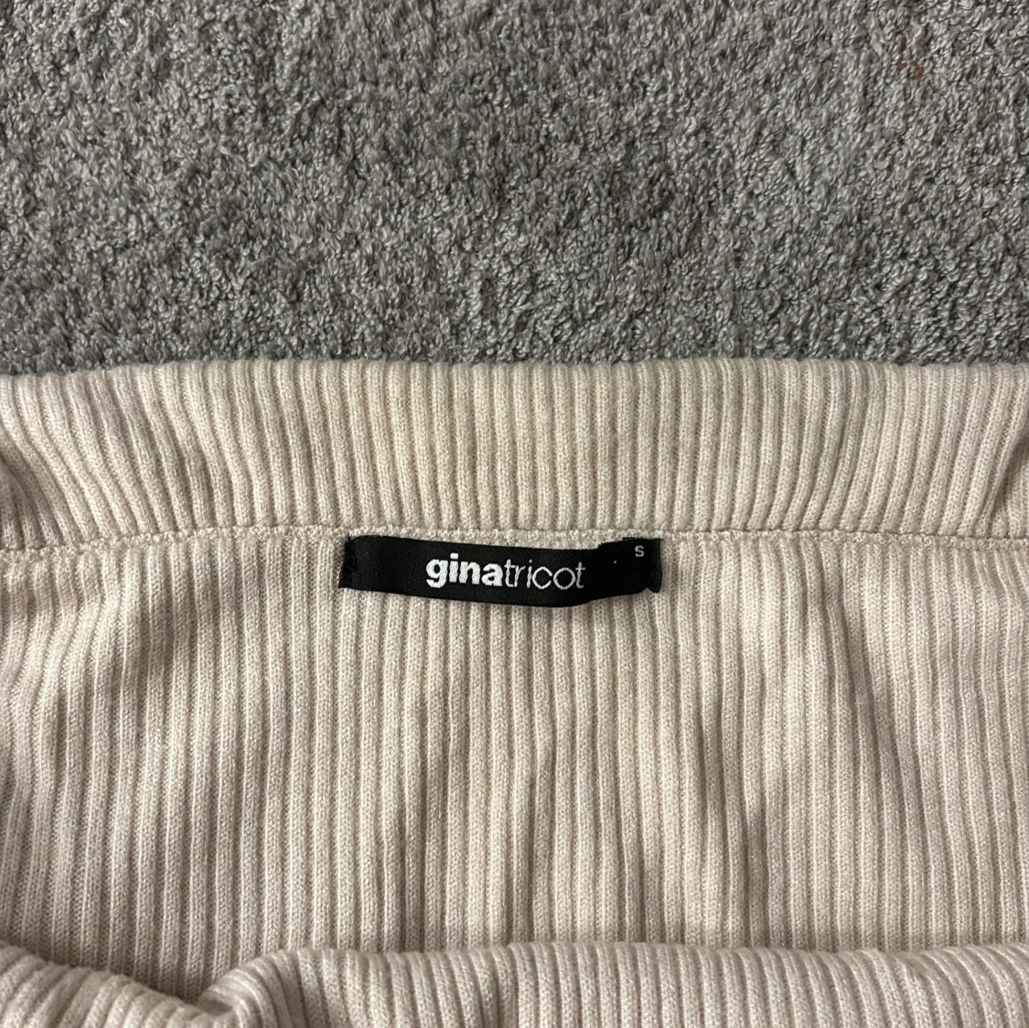 Superfin ribbad offshoulder topp från Gina Tricot i beige. Långärmad och croppad modell med bred krage som sitter snyggt över axlarna. Perfekt för dig som gillar en stilren och trendig look.