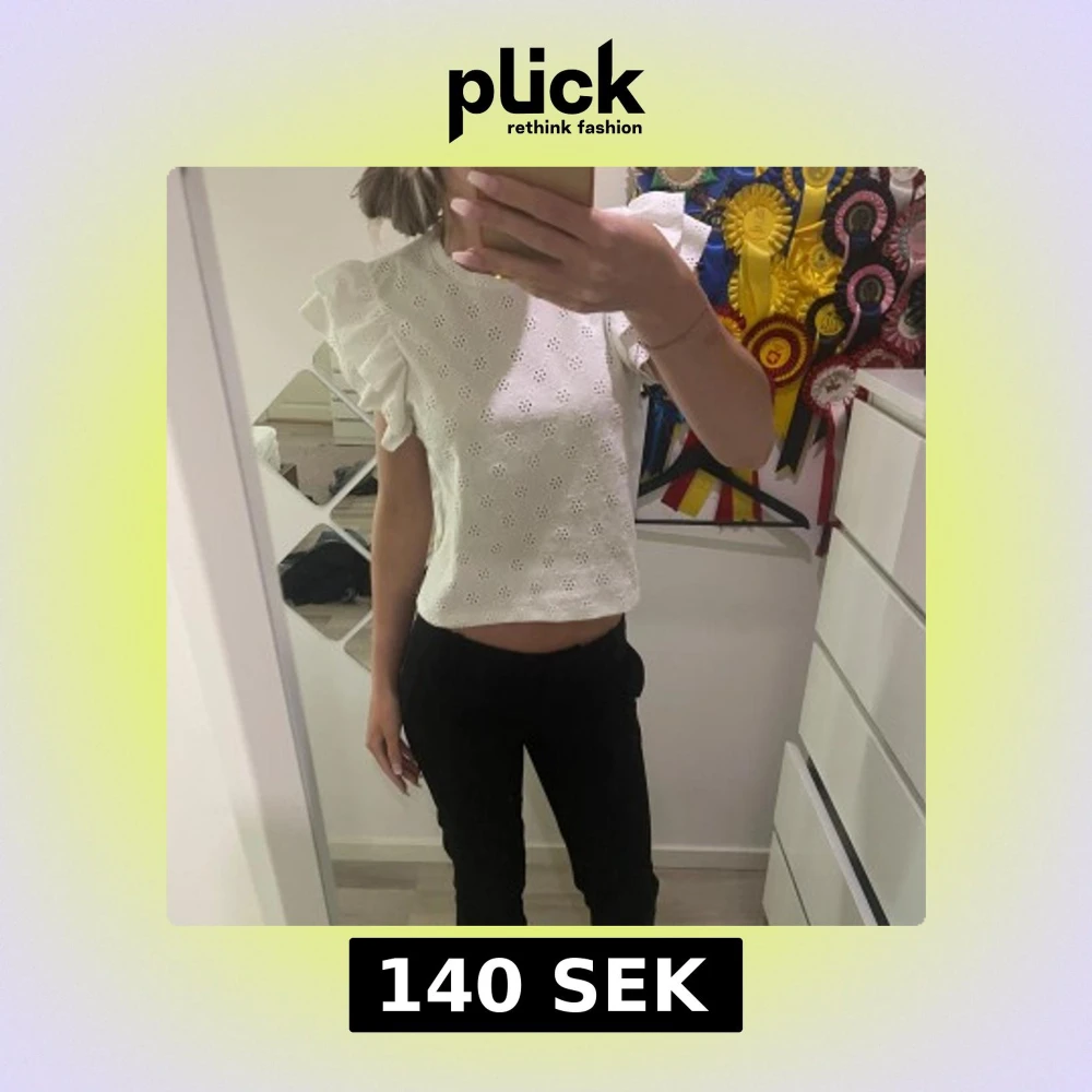 Supersöt vit blus från Gina Tricot i storlek S. Blusen har korta volangärmar. Nyskick💕