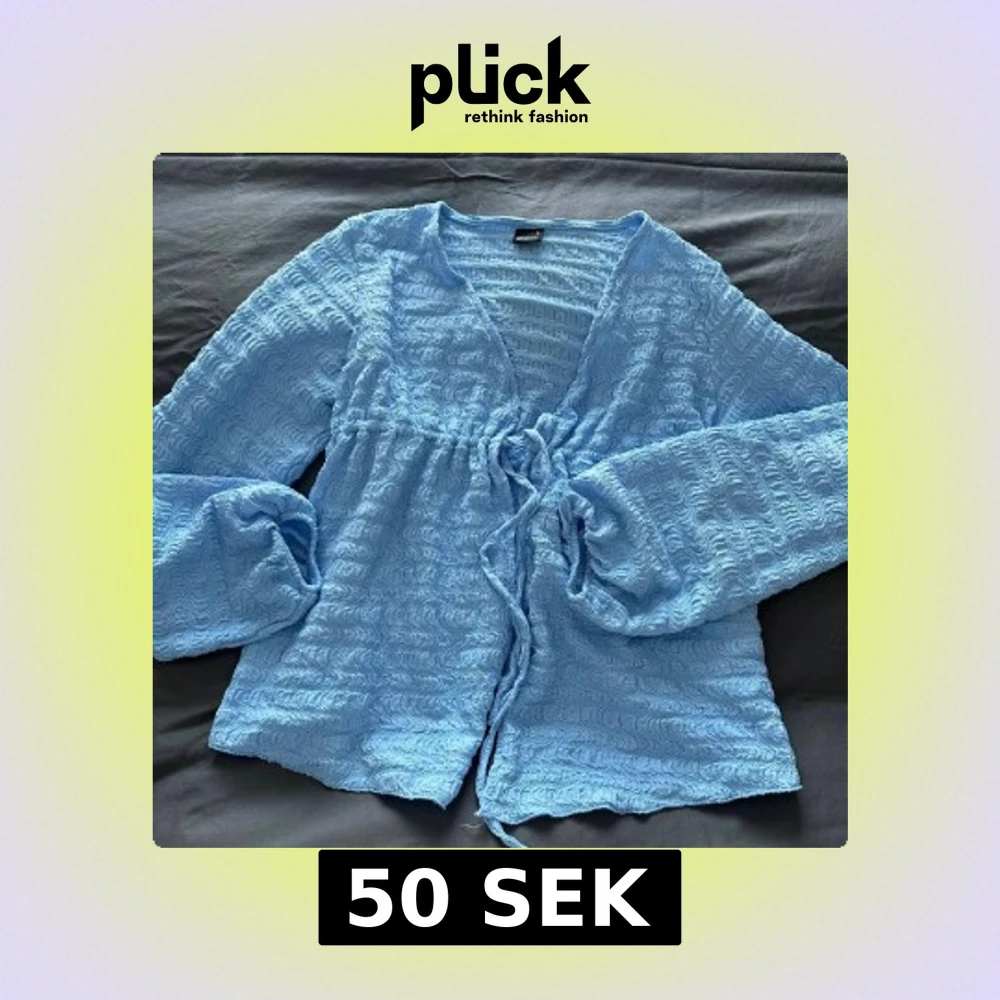Ljusblå omlottblus med knyt