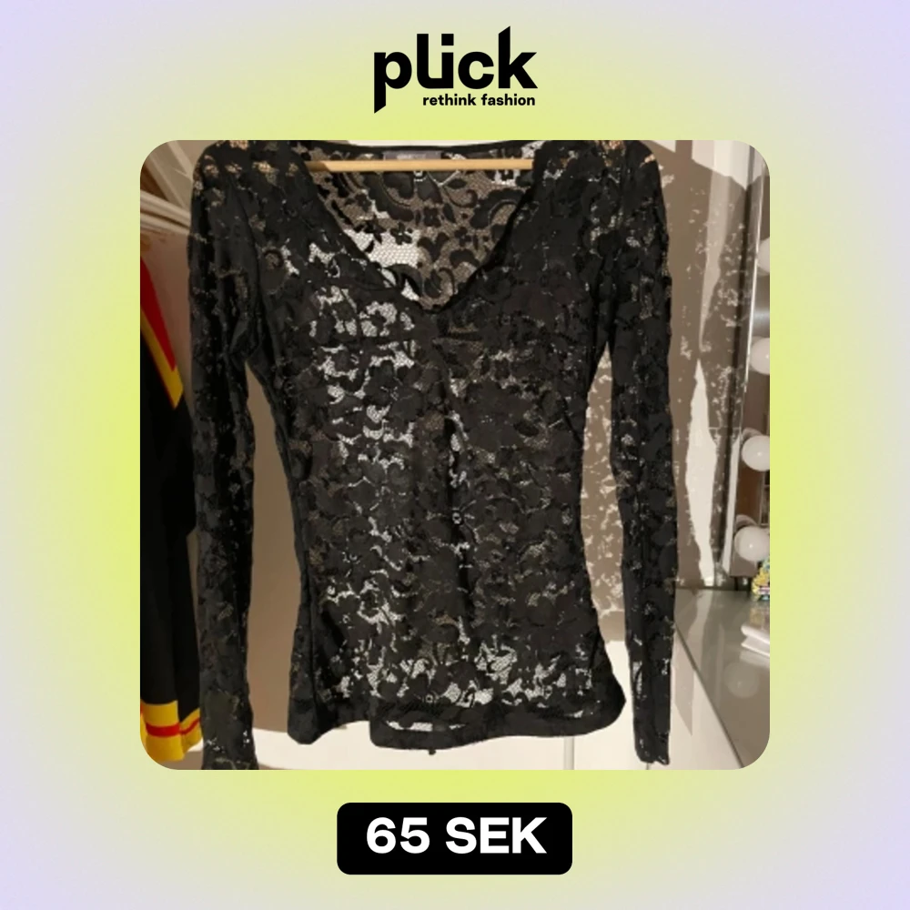 Säljer en elegant svart spetsblus med långärmad design. Blusen har en v-ringad hals och är perfekt för festliga tillfällen. Den är genomskinlig och ger en sofistikerad look.