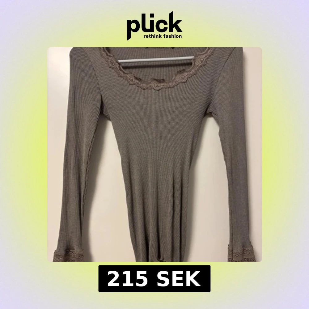 Beige ribbad långärmad topp med snygga spetsdetaljer vid halsringningen och ärmsluten. Har tyvärr klippt bort lappen med varifrån den är men om jag minns rätt var det Twilfit💕
