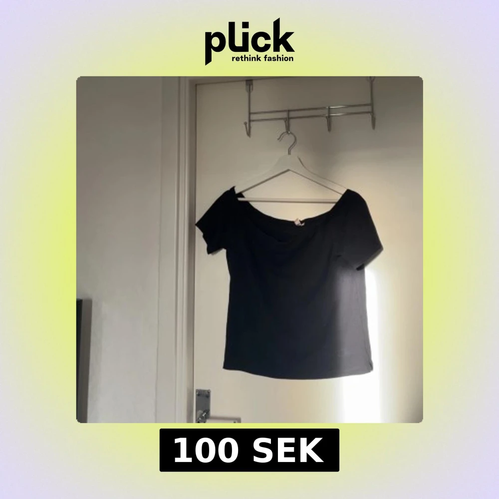 Säljer en svart offshoulder topp med korta ärmar. Toppen har en snygg, lite bredare halsringning som ger en cool och avslappnad vibe. Perfekt att styla med jeans eller kjol för en trendig look.