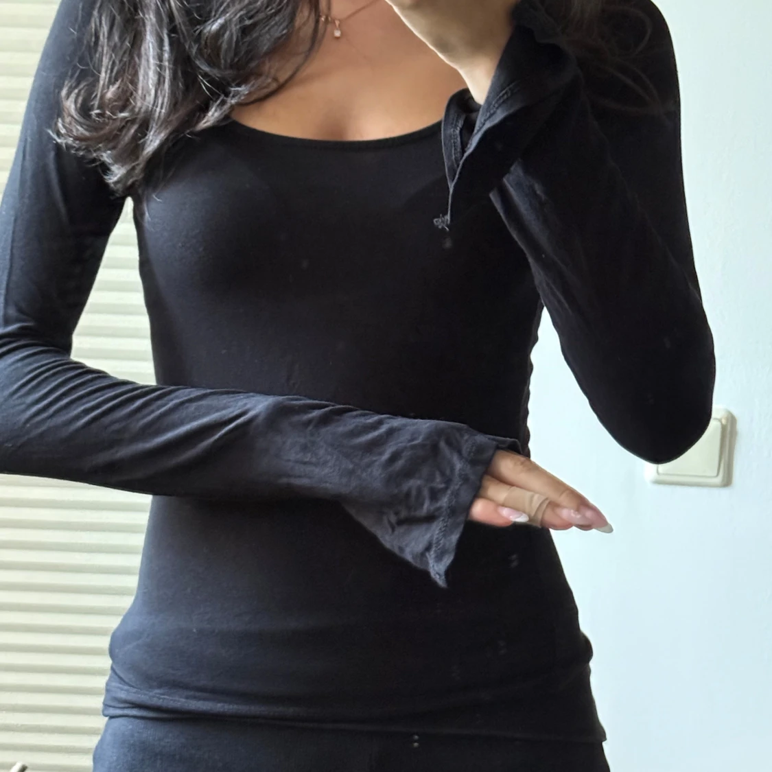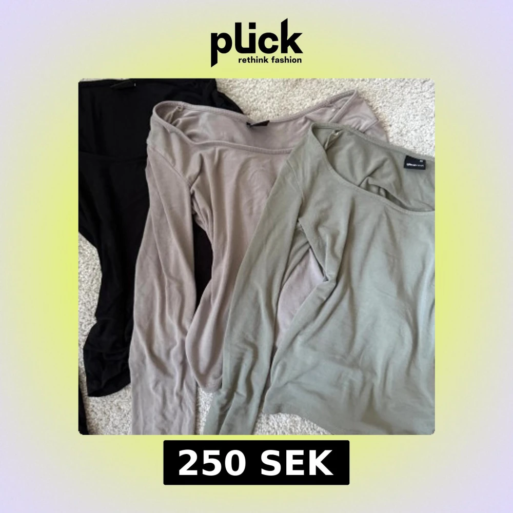 Säljer tre stilrena långärmade toppar från Stradivarius i svart, beige och ljusgrön. Alla har en smickrande slim passform, rundad hals och cool slitsdetalj vid ärmslut. Materialet är mjuk bomull med lite stretch, perfekt för en clean och trendig look.