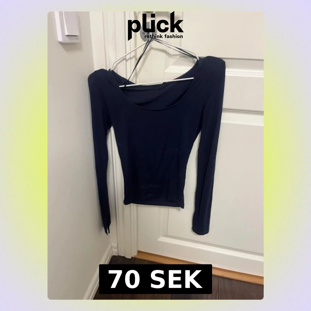 Slimmad mörkblå topp från Gina Tricot i storlek XS. Modellen har lång ärm och en rundad halsringning. Materialet är mjukt och stretchigt, troligtvis bomull eller polyester. Perfekt för dig som gillar enkla och stilrena plagg.