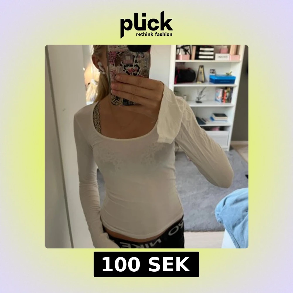Säljer en enkel och stilren vit långärmad topp från Gina Tricot i storlek XS. Super fin till både jeans och kjol💞💞