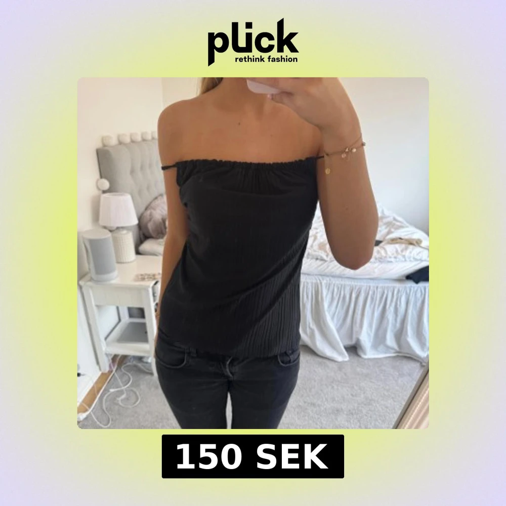 Snygg svart axelbandslös topp som kan bäras med eller utan axelband. Den har öppen rygg med ett kors🩷