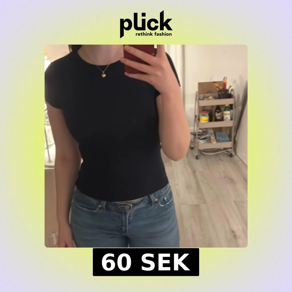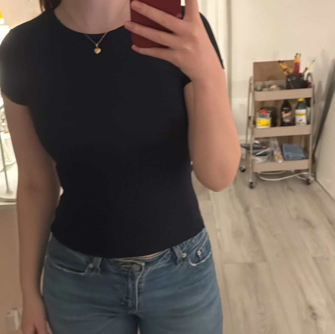 Mörkblå kortärmad topp med en tight passform. Soft tuch Från Gina i storlek xs. Aldrig använd, inga defekter eller liknanade