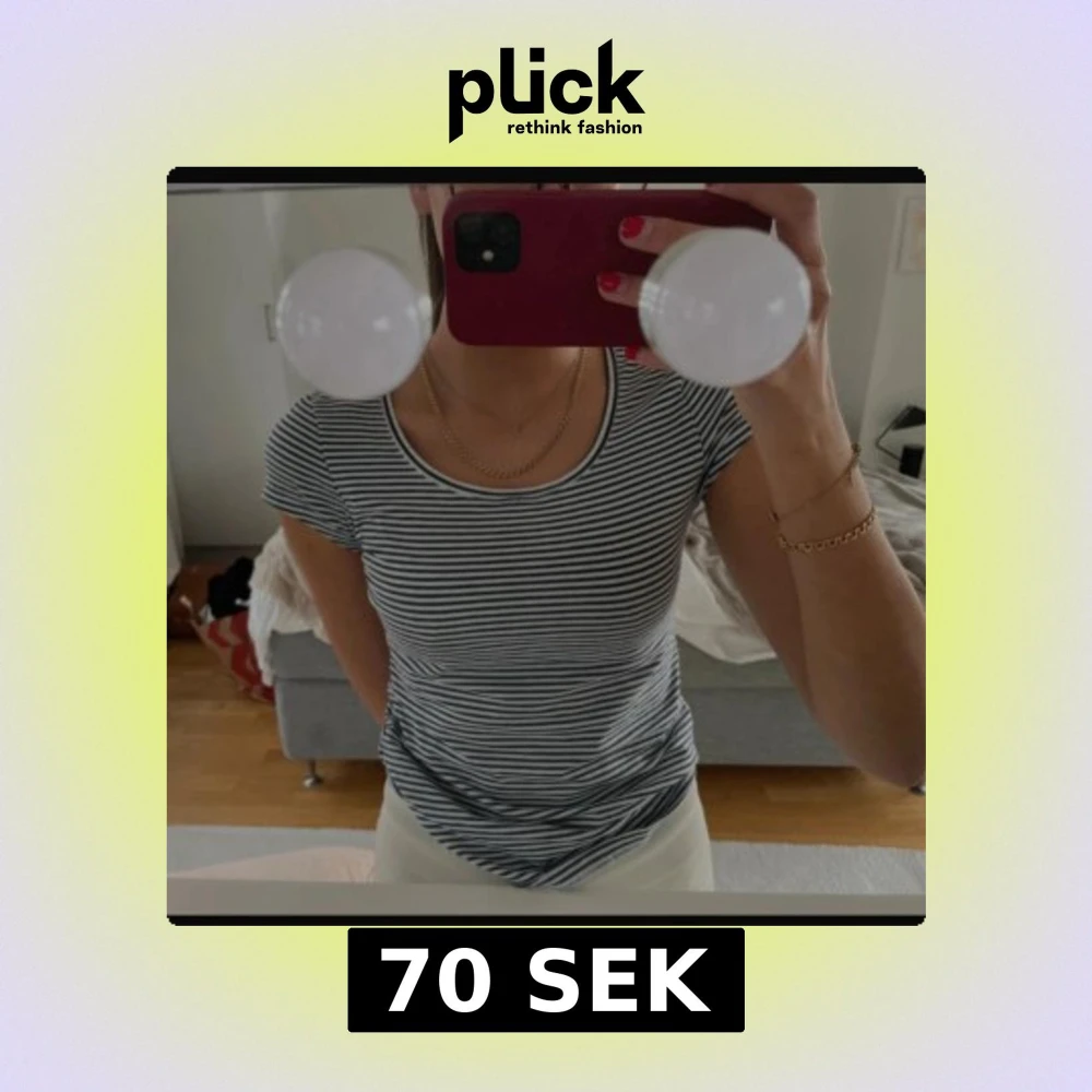 Säljer en fräsch topp med smala svarta och vita ränder. Modellen har rund hals och korta ärmar, perfekt för en chill och stilren look. Materialet känns mjukt och skönt mot huden, troligtvis bomull. Passar dig som gillar enkel och klassisk stil.