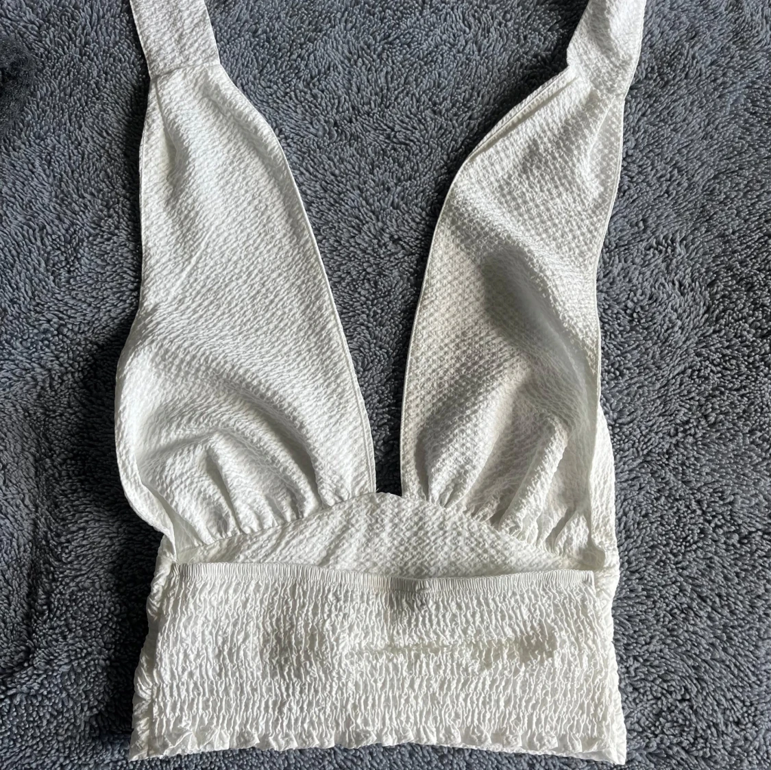 Säljer denna vita halterneck topp från Gina Tricot, perfekt till fest, då den aldrig kommit till användning. Toppen är i storlek 32 och har en öppen rygg💗