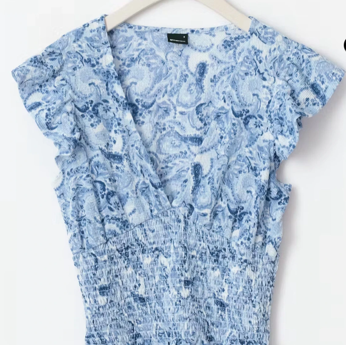Ljusblå mönstrad topp ifrån Gina Tricot, köpt i somras men aldrig använd