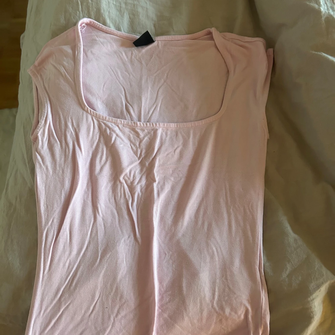 Supersöt ljusrosa topp från Gina Tricot i storlek XS. Modellen är ärmlös med en bred, rundad halsringning och mjukt, stretchigt material i bomull. Perfekt att styla med jeans eller kjol för en chill look.