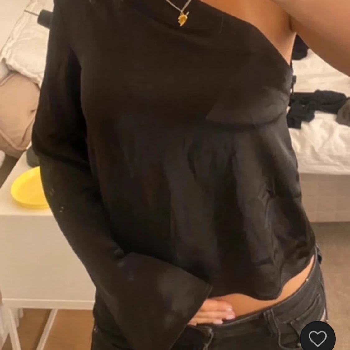 Snygg svart oneshoulder topp med en elegant och stilren design. Perfekt för en kväll ute eller en speciell tillställning. Toppen har en lös passform och är tillverkad i ett glansigt material som ger en lyxig känsla.
