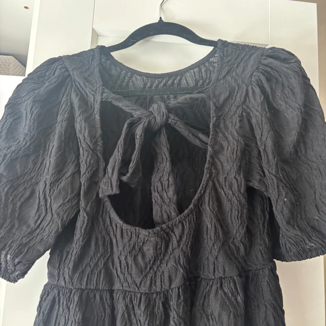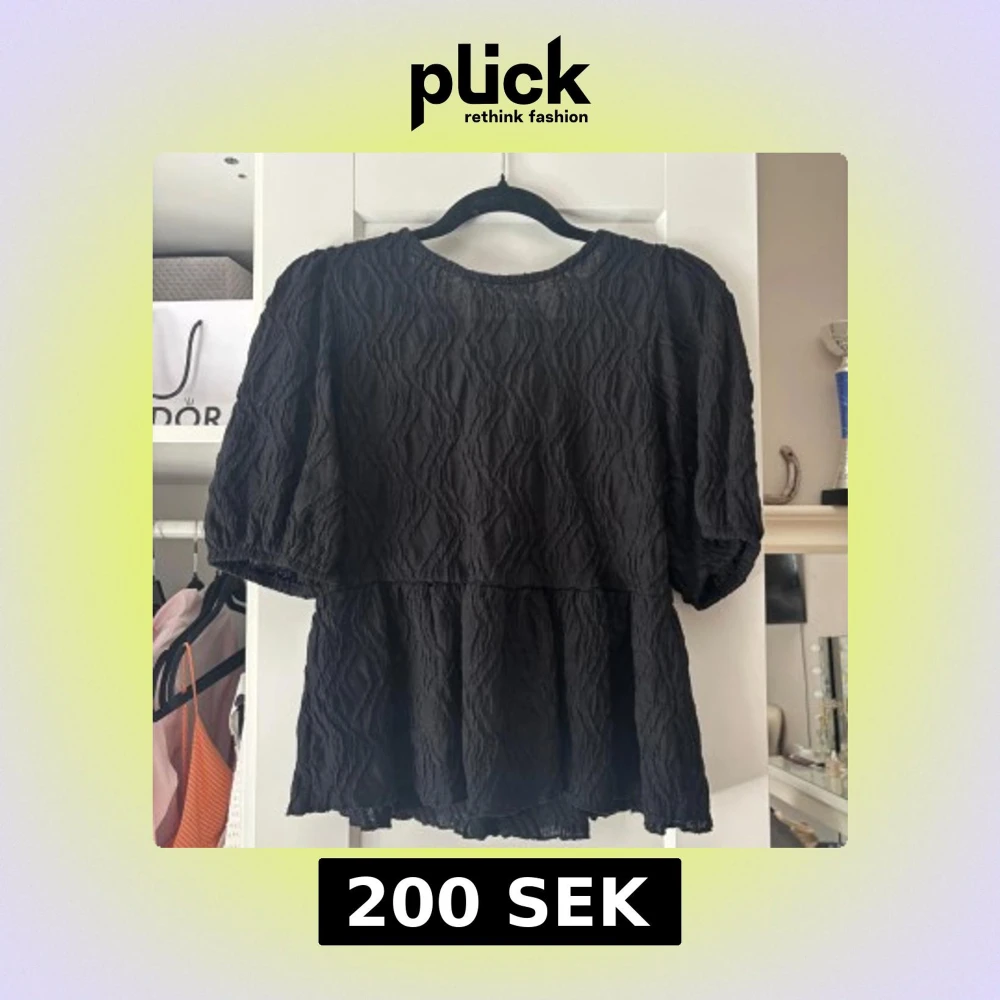 Supersöt svart blus med puffiga korta ärmar och roset i ryggen❤️