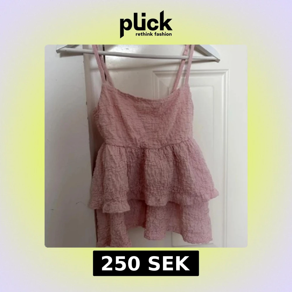 Söt rosa topp med volanger och tunna axelband. Toppen har en luftig och skrynklig struktur som ger en avslappnad känsla. Perfekt för varma dagar och somriga outfits. LÅNAD BILD!