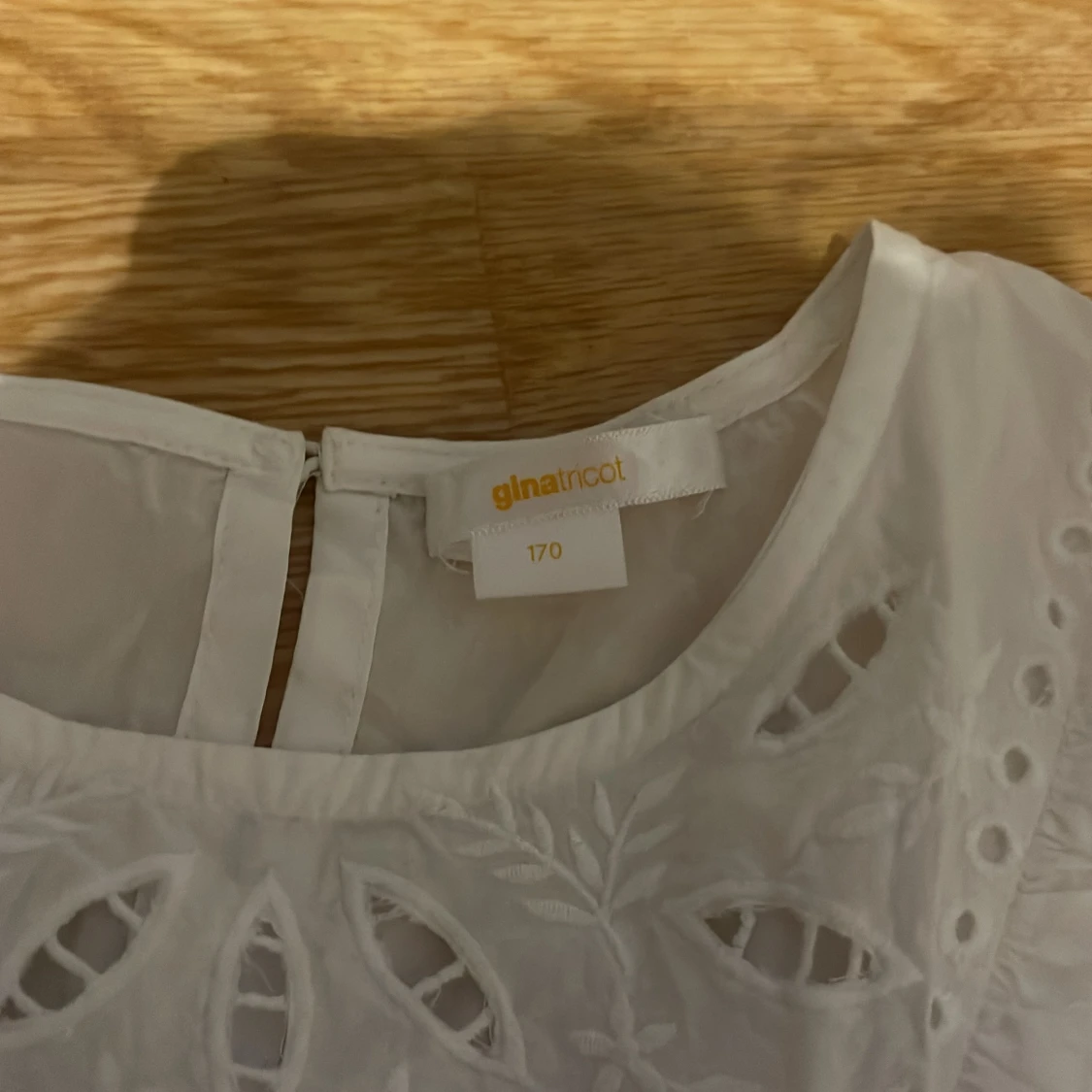 Jättefin vit blus från Gina Young! aldrig använd, broderi vid kragen men även lite på ärmarna! Säljer då den inte kommer till användning.