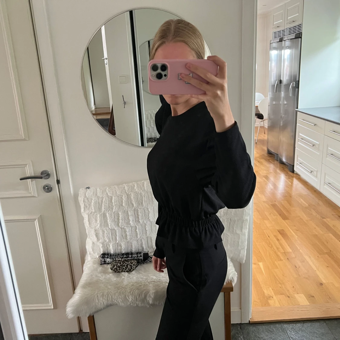 Helt oanvänd långärmad topp med volang vid midjan. Inköpt på Gina Tricot för cirka två år sedan. Säljes på grund av att den aldrig kommit till användning. Hör av er vid fler frågor!