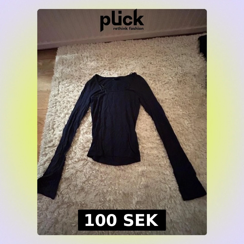 Säljer en svart långärmad topp från Gina Tricot i storlek XS. Toppen har en rundad halsringning och är figurnära med långa ärmar. Materialet är mjukt och stretchigt, perfekt för en clean och enkel look. Passar dig som gillar stilrena basplagg.