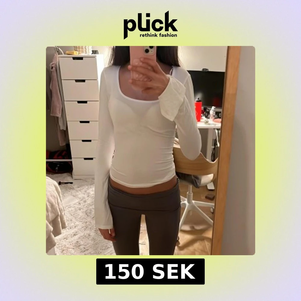 Säljer en stilren vit långärmad topp från Gina Tricot i storlek XS. Toppen har en tight passform och är tillverkad i mjukt material.