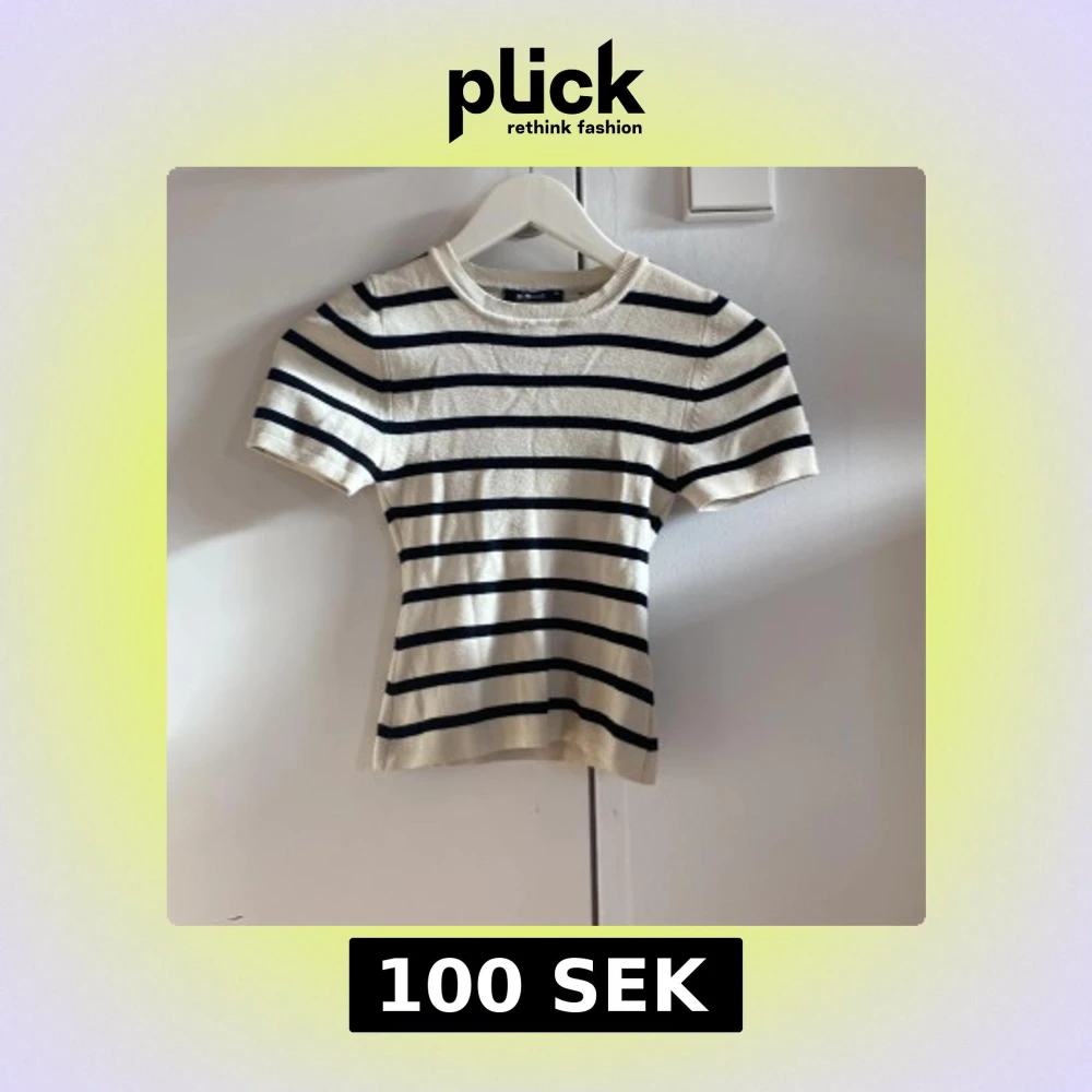 Snygg kortärmad topp som är en gammal model från Gina Tricot i storlek XS. Den är vit med marinblå horisontella ränder, står storlek XS fast passar som en XXS💛🖤