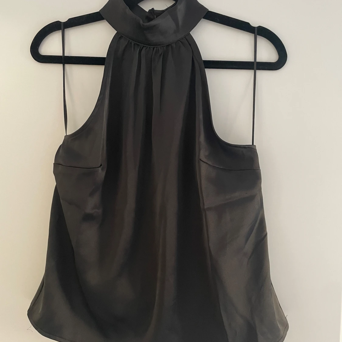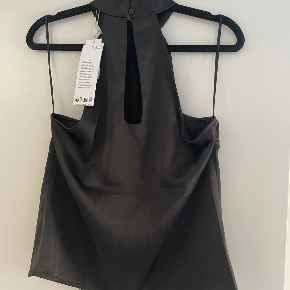 Super snygg svart halterneck topp från Gina tricot i satin material. Aldrig använd, helt ny med prislappen kvar och den går inte att köpa längre! Storlek 36💛💛