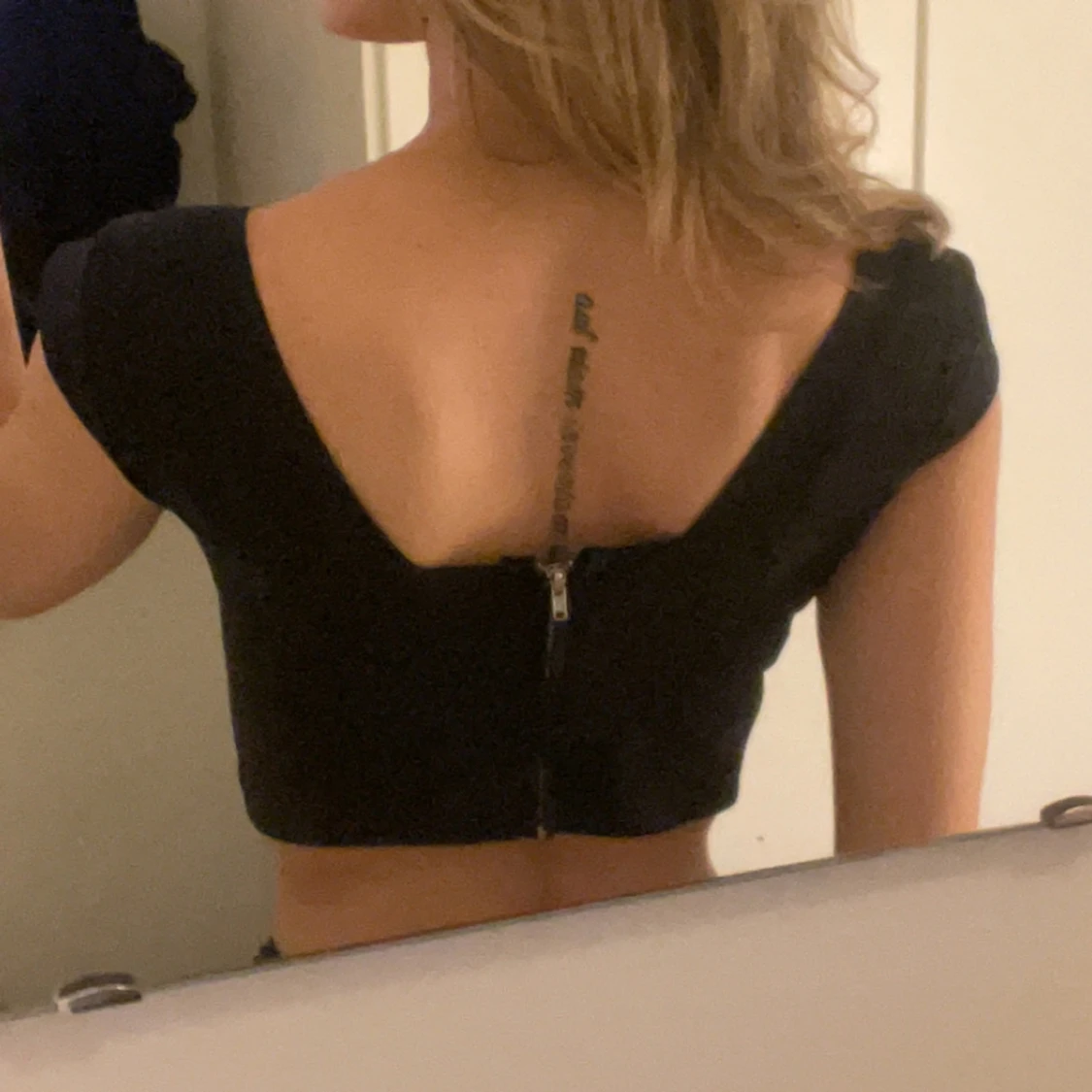 Svart topp med blixtlås på ryggen, köpt från ginatricot i storlek XS Nyskick Pris går att diskuteras 😊