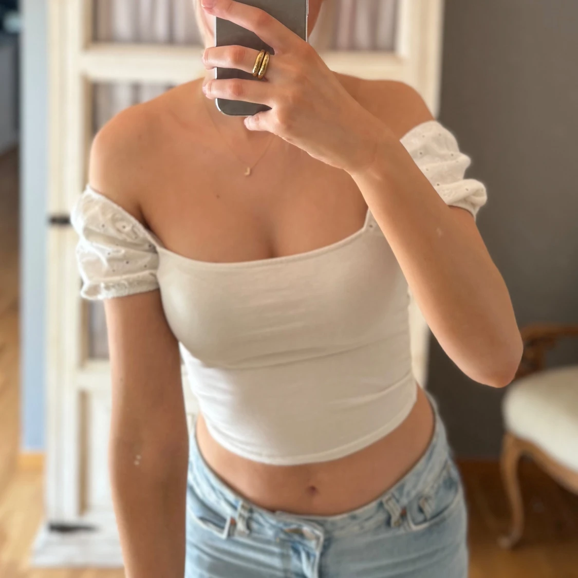 Denna topp är perfekt till en sommardag eller en utgång. Armarna har är jätte söta och har blomdetaljer! Använd ett fåtal gånger.🌸